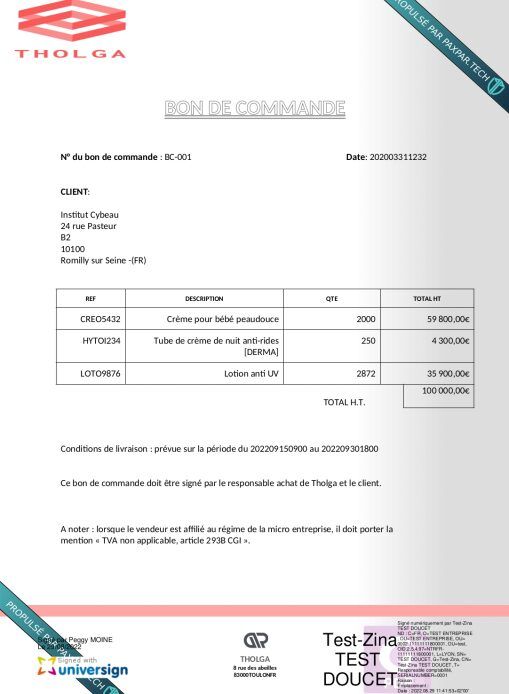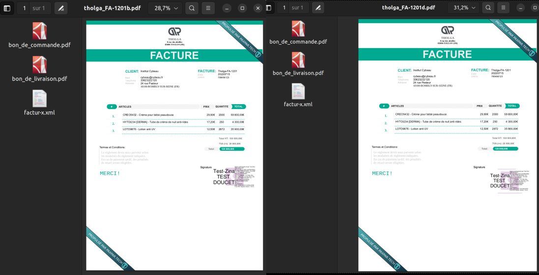 Zina: "On the invoice that Peggy sent back to me, there are several non-compliances: not only have quantities been altered, but the electronique signature appended is not mine eventhough it looks similar to mine!"