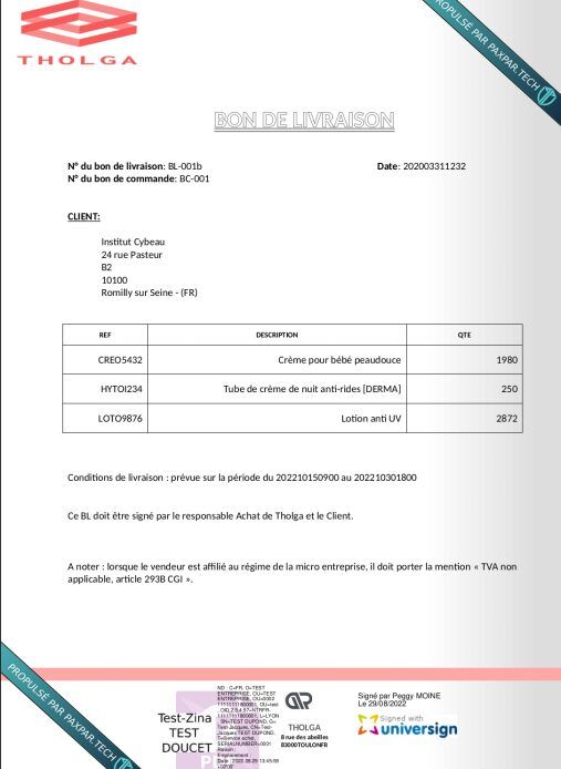 In summary: The customer deliberately changes the quantity of products delivered. This modification breaks the signature initially applied by the supplier company. The customer decides to forge the electronic signature on the Delivery Note and thus be able to demand that the "missing" items be sent.